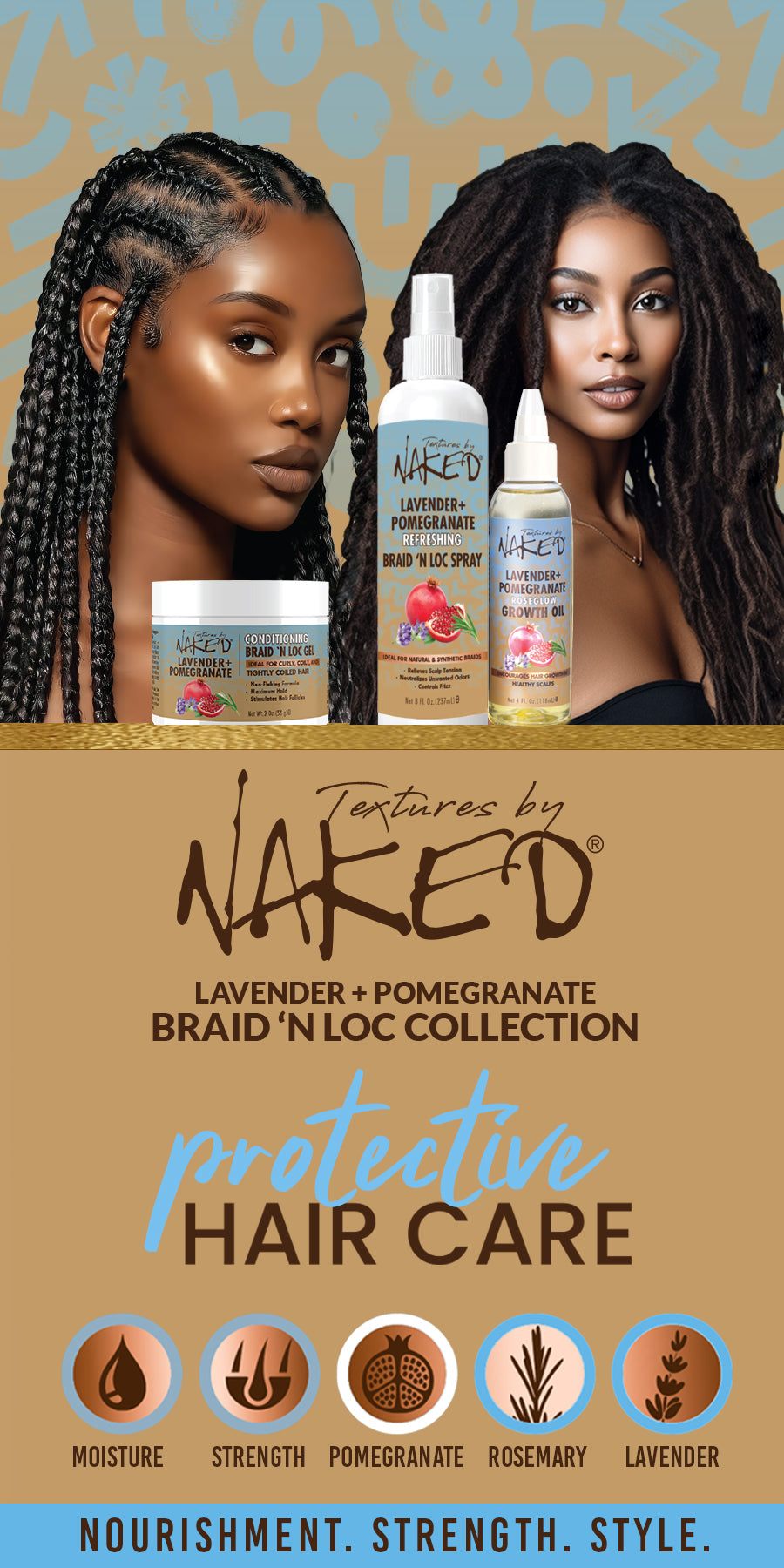 Introducing our Textures By Naked Lavender + Pomegranate Braid 'N Loc Collection- a curated line of haircare essentials designed to celebrate and care for textured hair in its most elegant forms: braids, locs, and natural protective styles.