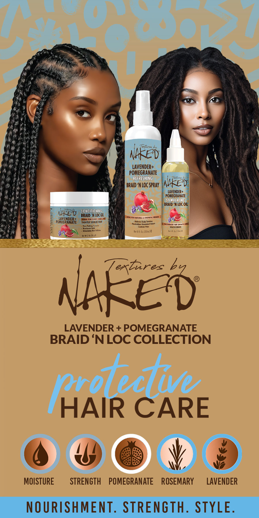 Introducing our Textures By Naked Lavender + Pomegranate Braid 'N Loc Collection- a curated line of haircare essentials designed to celebrate and care for textured hair in its most elegant forms: braids, locs, and natural protective styles.